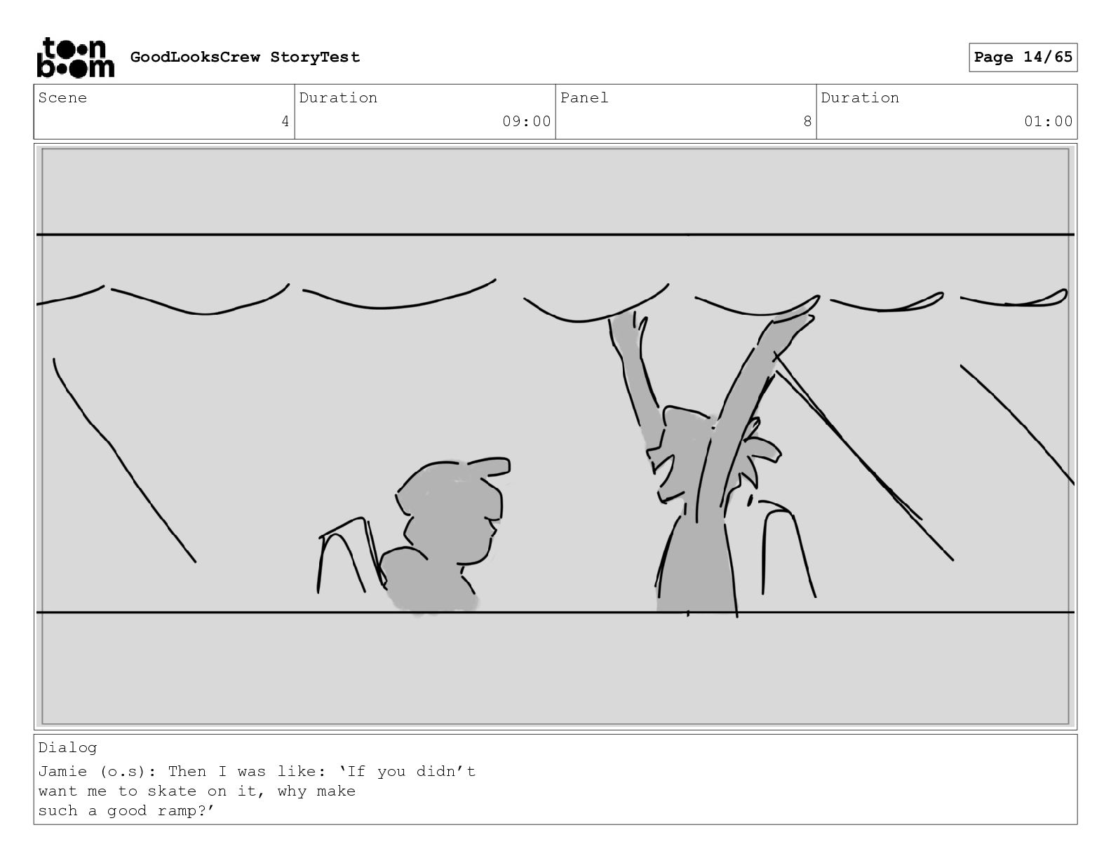 Scene 12 Duration 19:00 Panel 14 Duration 01:00 GoodLooksCrew StoryTest