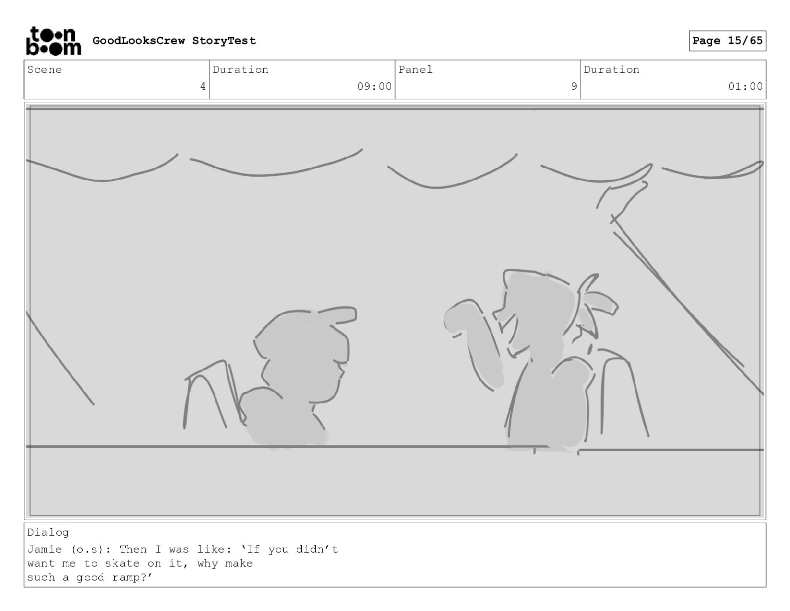 Scene 12 Duration 19:00 Panel 15 Duration 01:00 GoodLooksCrew StoryTest