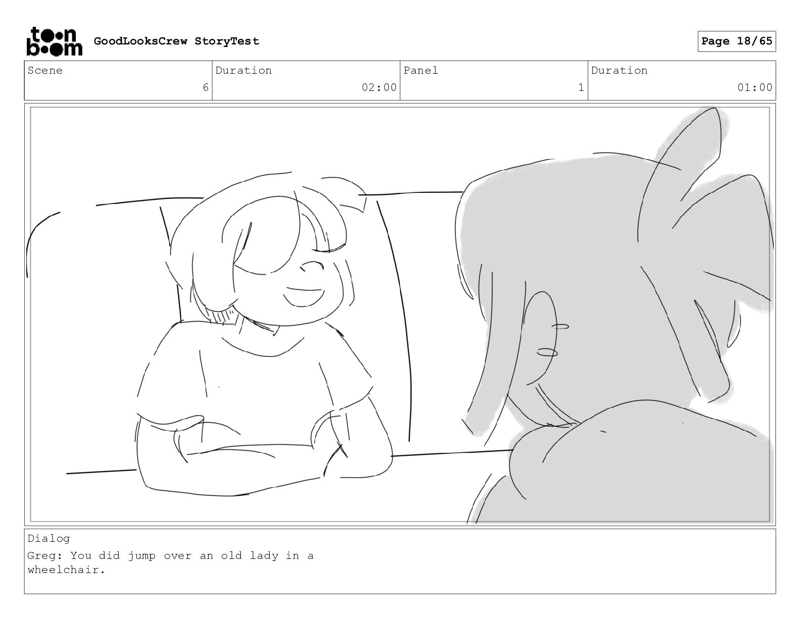 Scene 6 Duration 02:00 Panel 1 Duration 01:00 Dialog Greg: