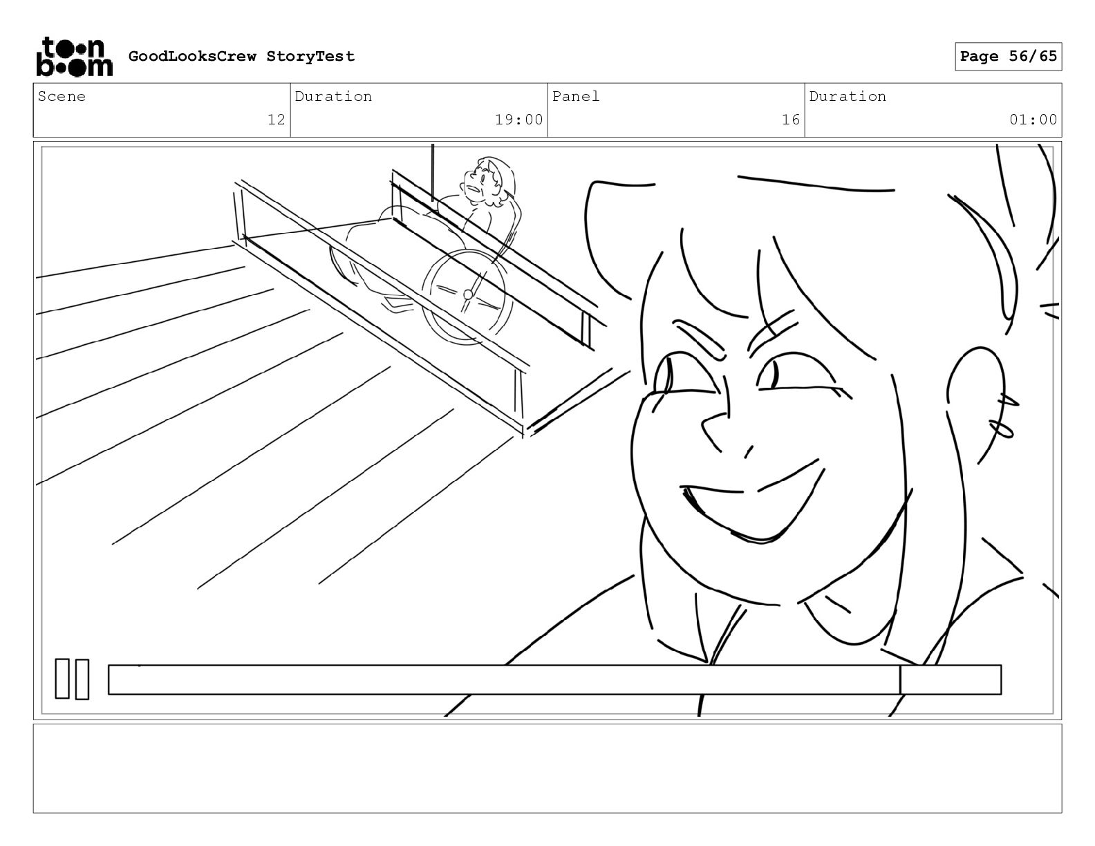 Scene 12 Duration 19:00 Panel 16 Duration 01:00 GoodLooksCrew StoryTest
