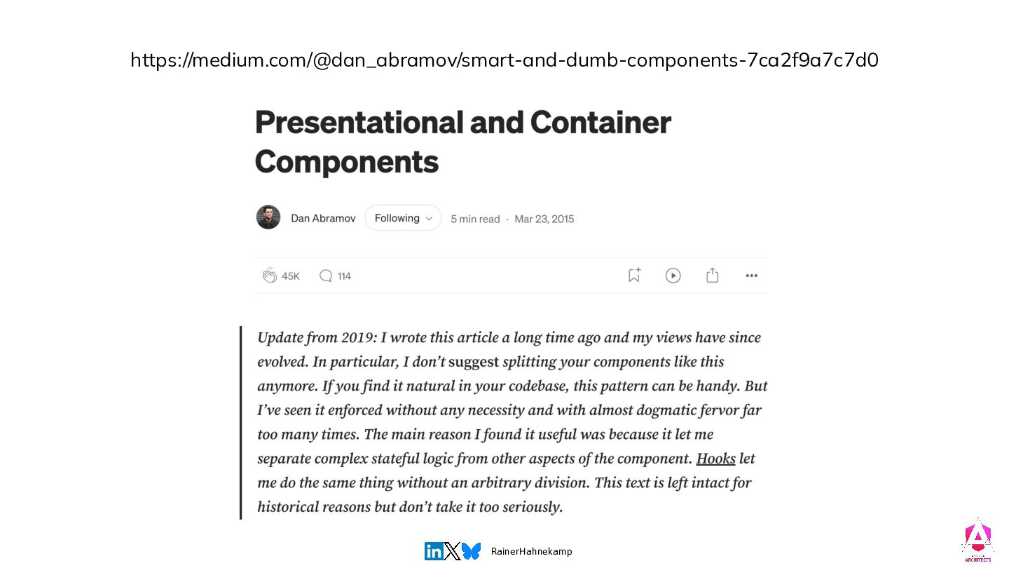When I started using Angular in 2018, most architectural "rules" were already set in stone: Smart vs. Dumb components, isolated domains, and shared modules.