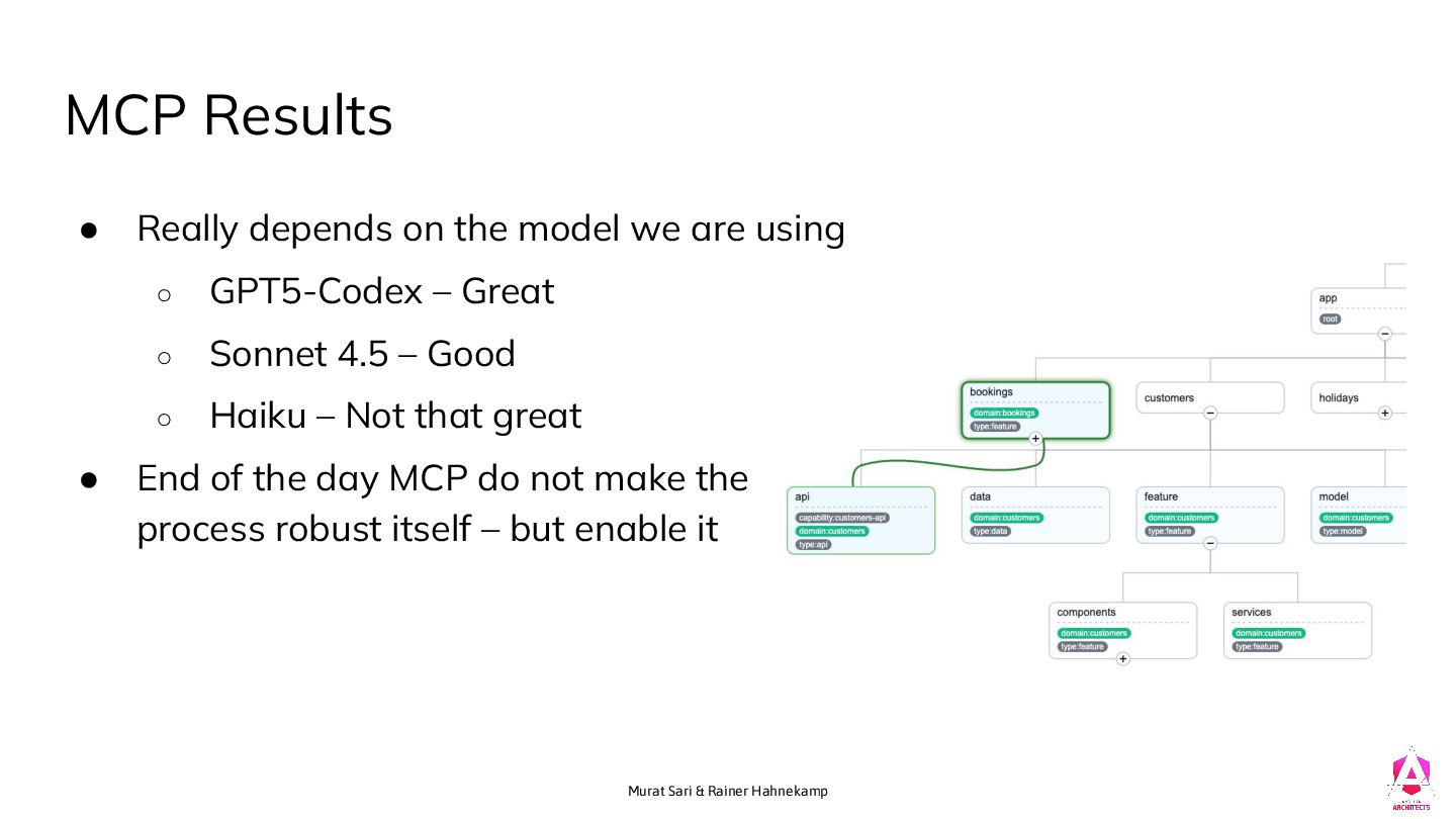 on the model we are using ◦ GPT5-Codex – Great ◦ Sonnet 4.5 – Good ◦ Haiku – Not that great • End of the day MCP do not make the process robust itself – but enable it