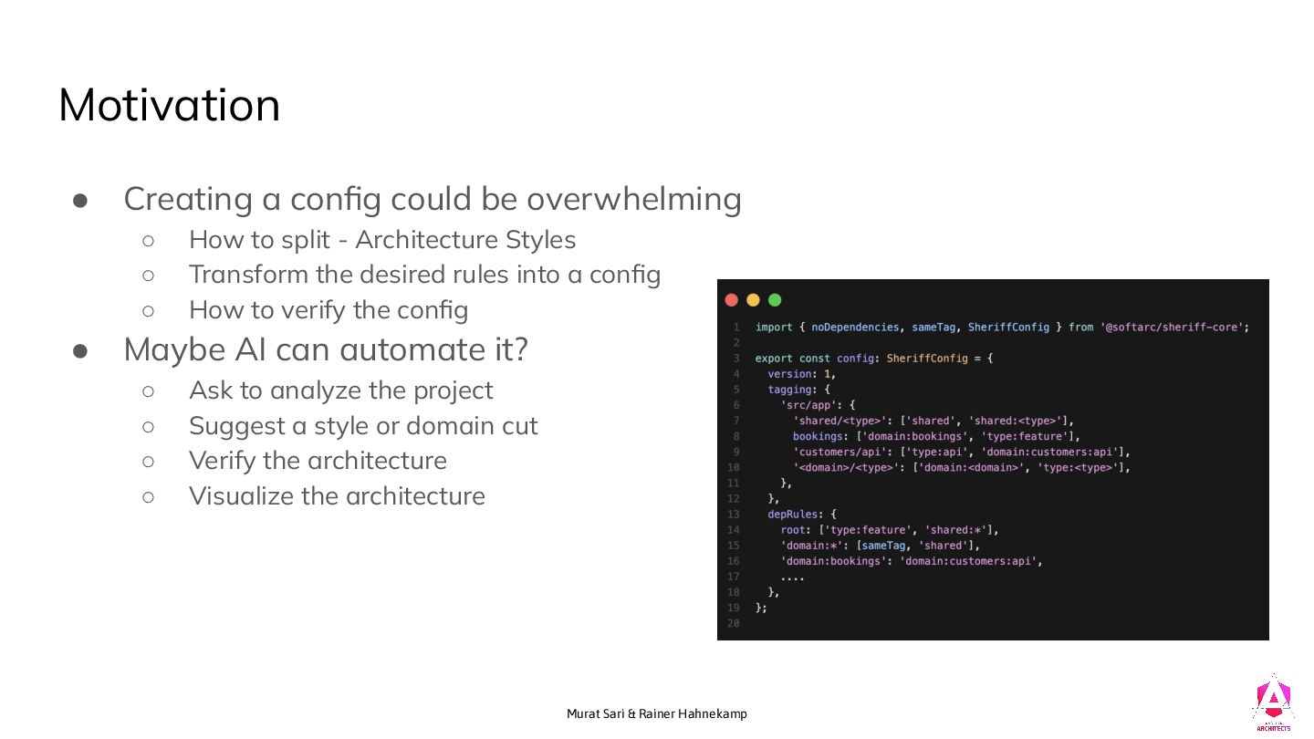4. Murat Sari & Rainer Hahnekamp Motivation • Creating a config