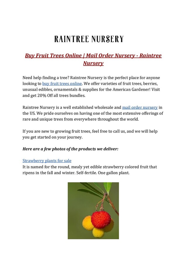 Raintree Nursery is a well established wholesale and mail order nursery in the US. We pride ourselves on having one of the most extensive offerings of rare and unique trees from everywhere throughout the world.