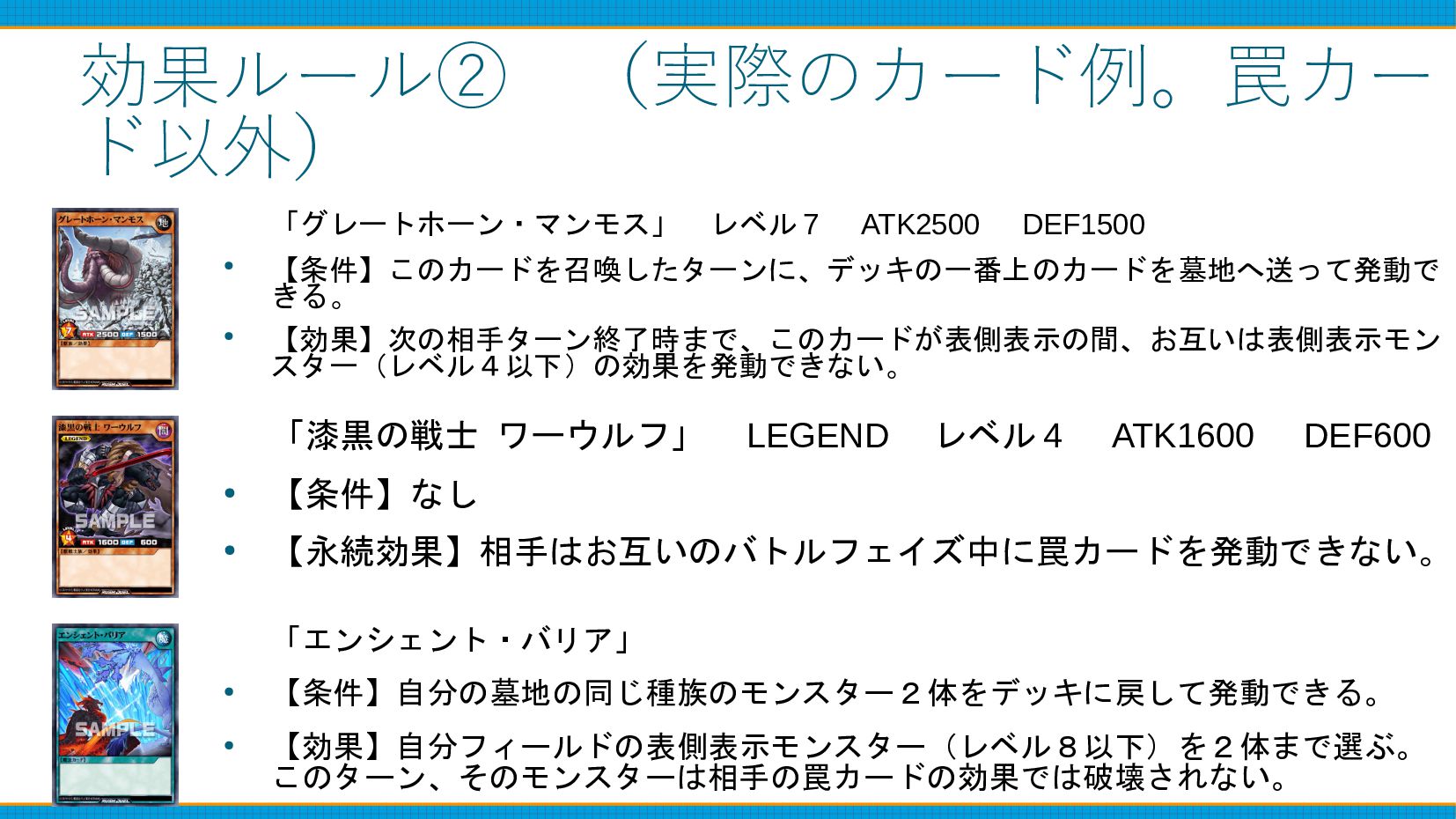 ・③効果とは別のテキスト、カードが持つ効果の数 (および実際のカード例)