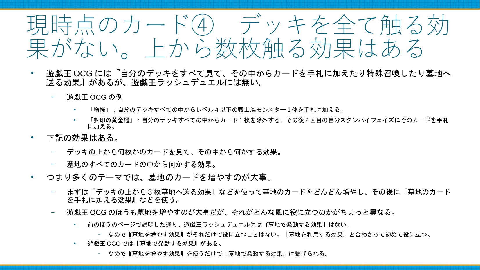 ・④デッキを全て触る効果がない。上から数枚触る効果はある (および実際のカード例)