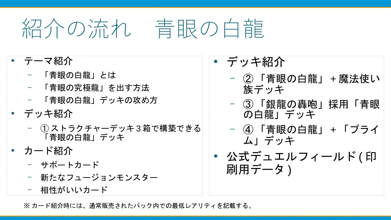 テーマ紹介 ・「青眼の白龍」とは ・「青眼の究極龍」を出す方法 ・「青眼の白龍」デッキの攻め方