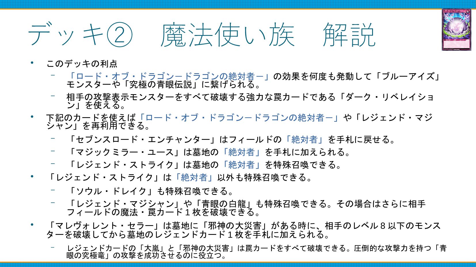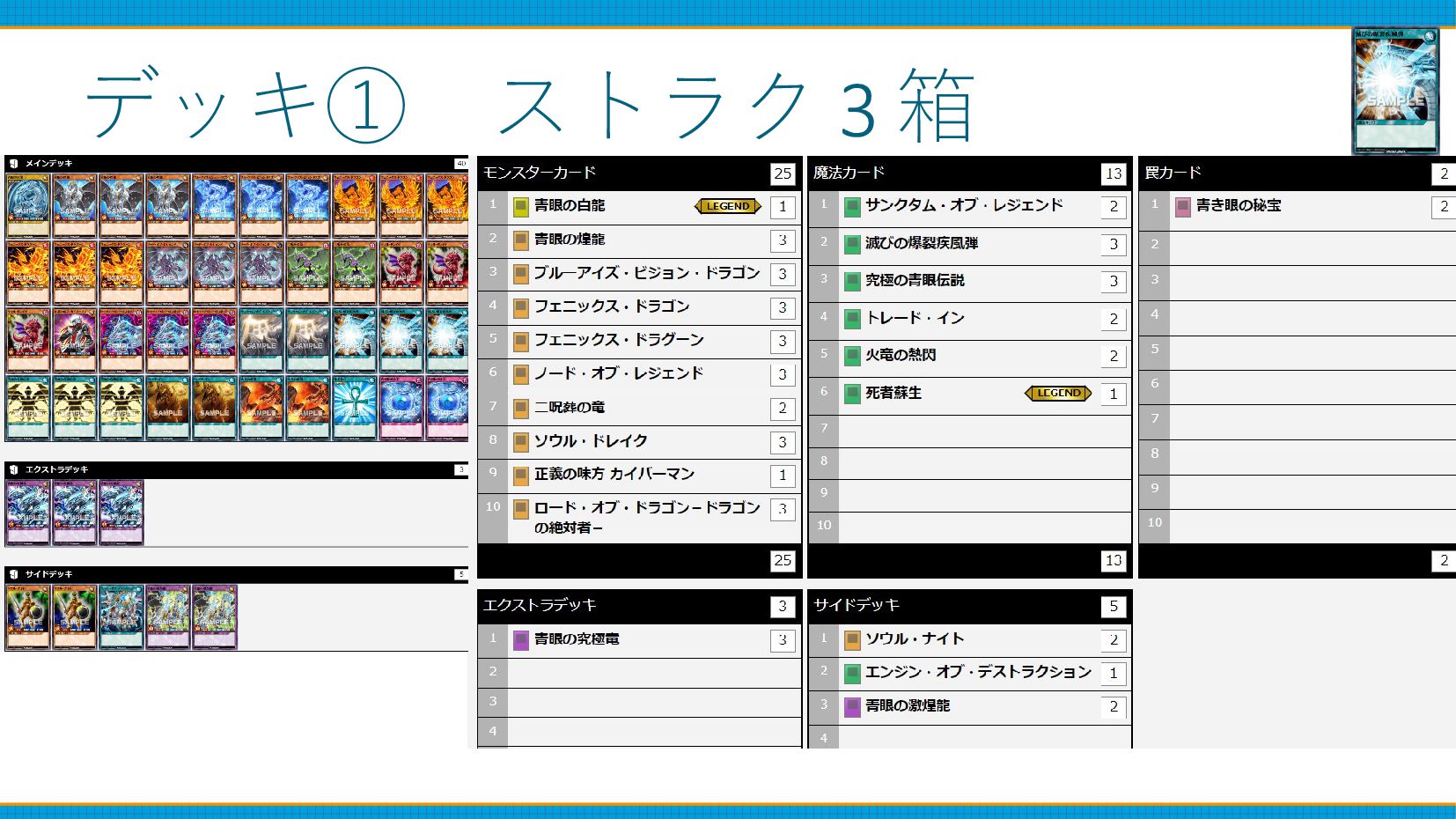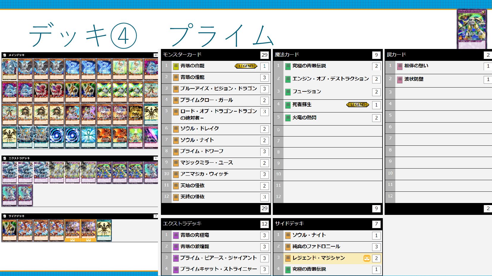 デッキ紹介 ・「青眼の白龍」+魔法使い族デッキ ・「銀龍の轟咆」採用「青眼の白龍」デッキ ・「青眼の白龍」+「プライム」デッキ