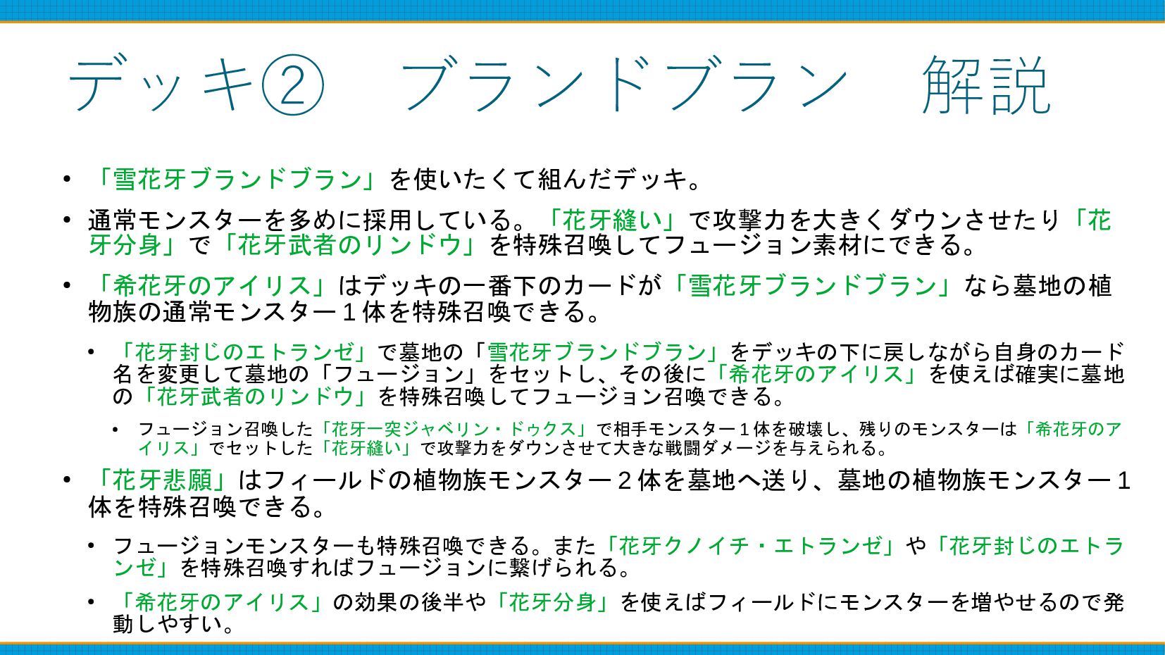 ・②「雪花牙ブランドブラン」採用 植物族デッキ