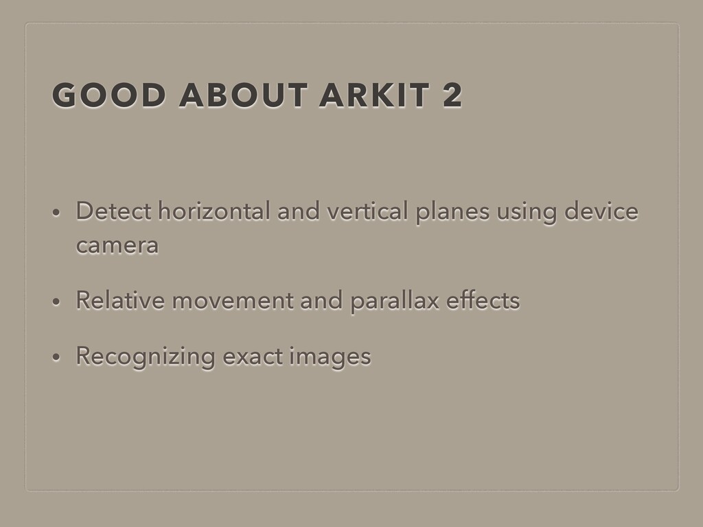 GOOD ABOUT ARKIT 2 • Detect horizontal and vertical planes