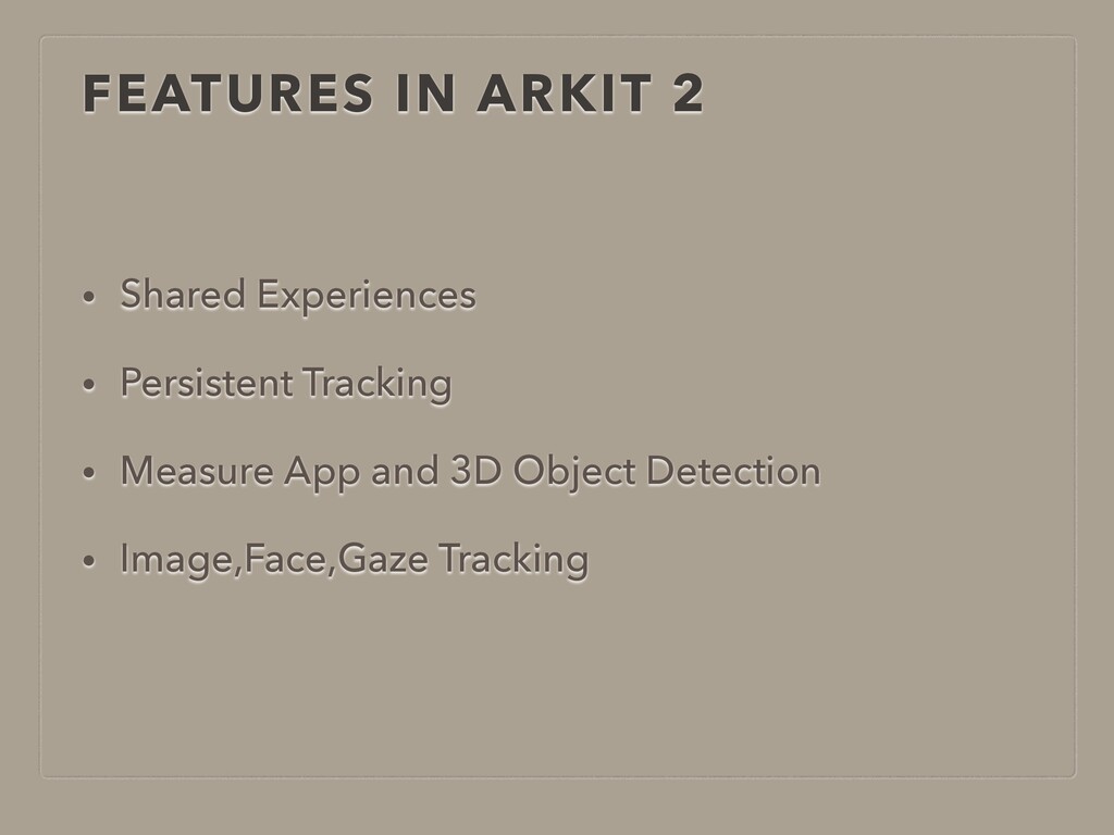 FEATURES IN ARKIT 2 • Shared Experiences • Persistent Tracking