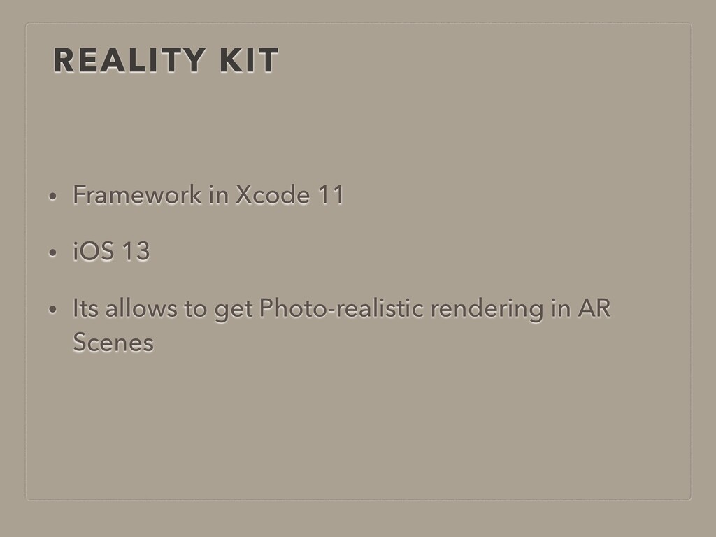 REALITY KIT • Framework in Xcode 11 • iOS 13