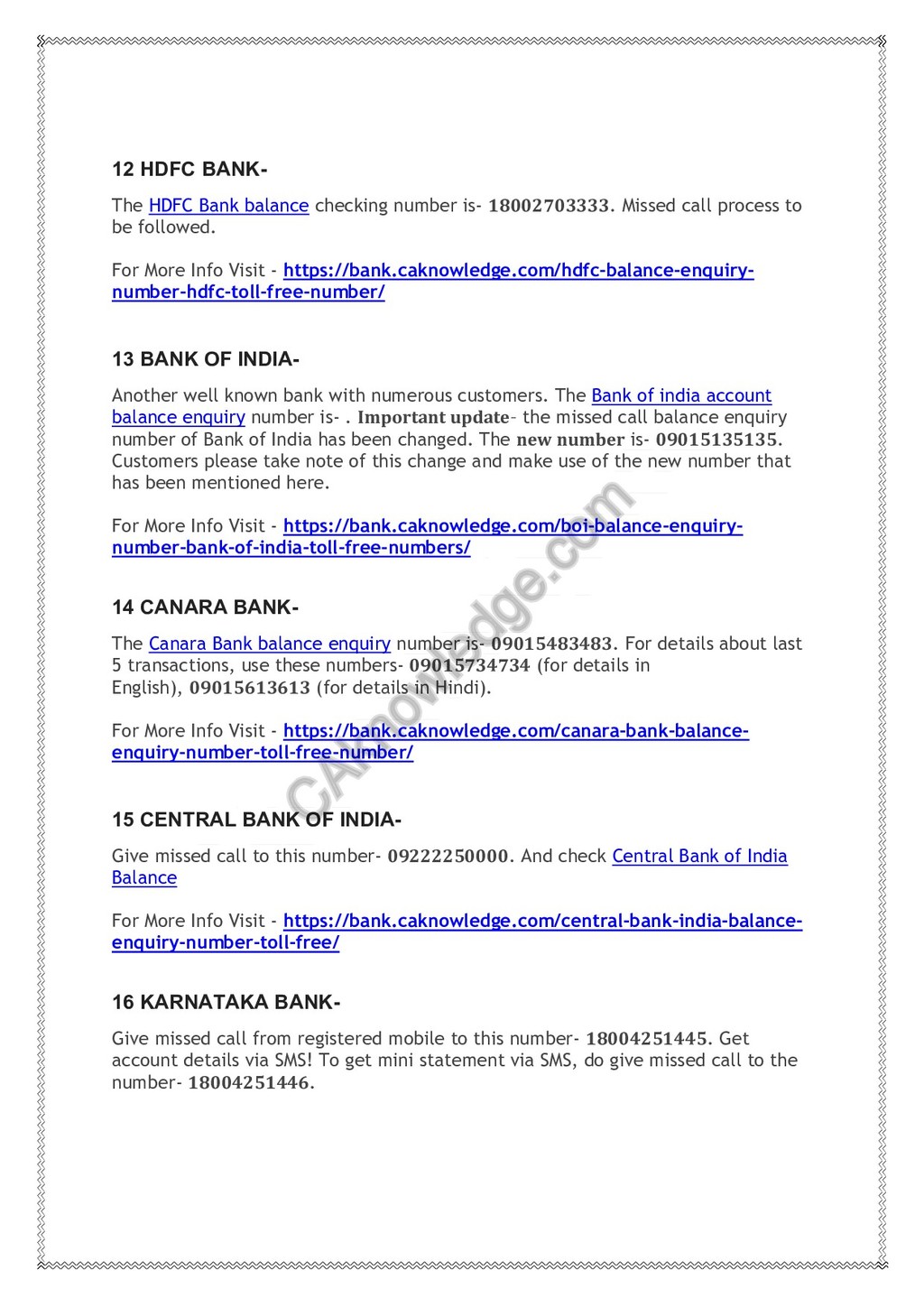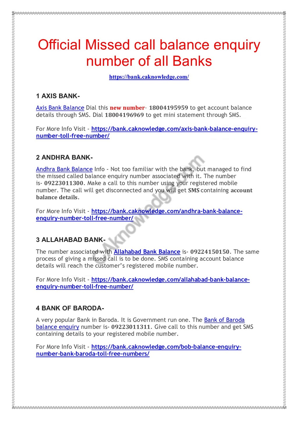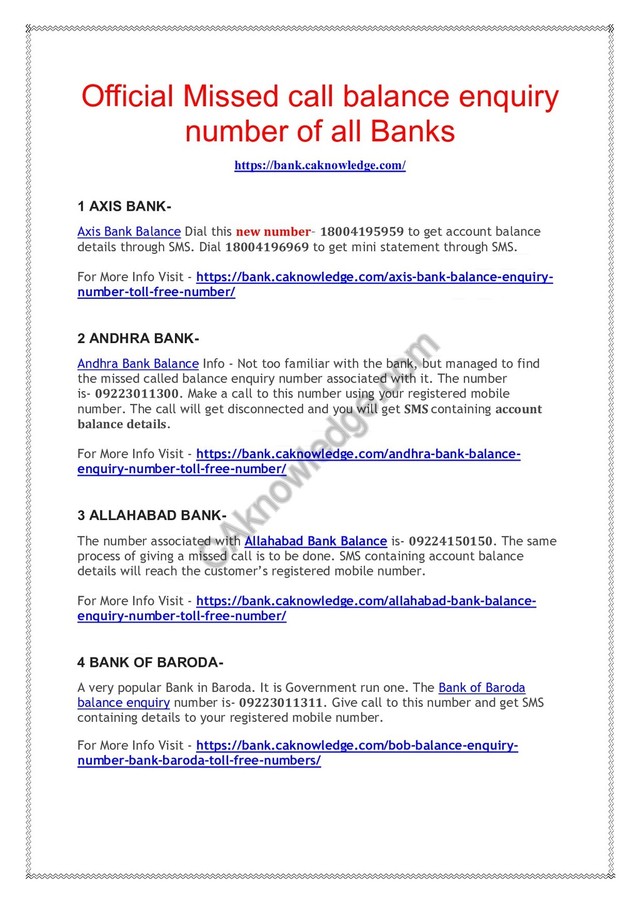 Official Missed call balance enquiry number of all Banks.