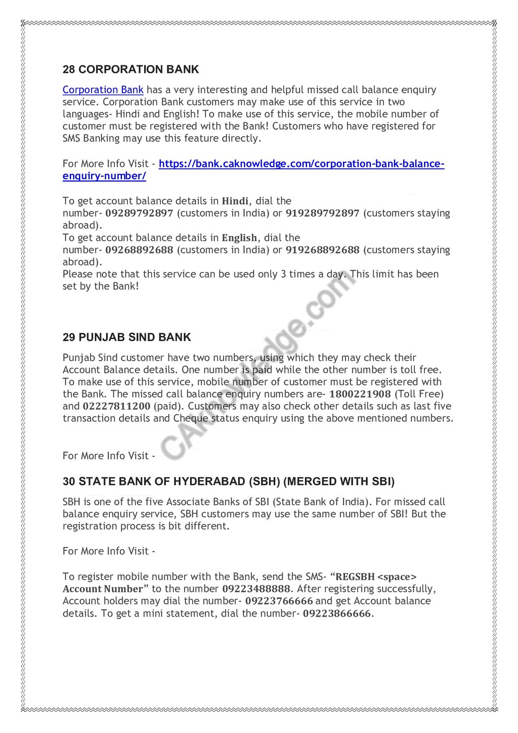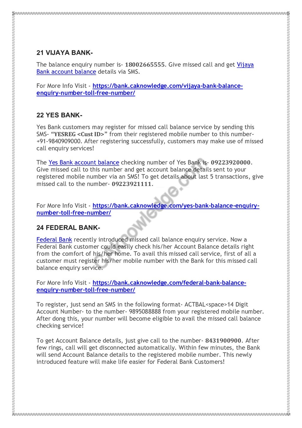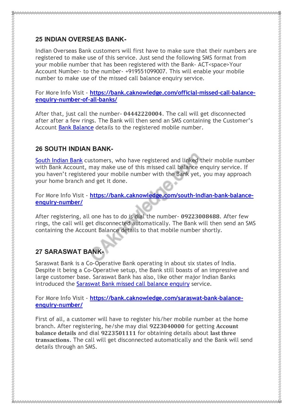 Official Missed call balance enquiry number of all Banks.