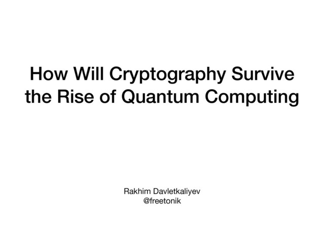 The most widely used cryptography today is based upon a handful of ideas from number theory. The key to the security of most communications in the world lies in the sheer scale of the computation required to break codes. But some quantum algorithms will definitely reduce the computation time from billions of years to few hours, rendering modern cryptography useless. How will cryptography survive the rise of quantum computing? Or is there nothing to worry about?