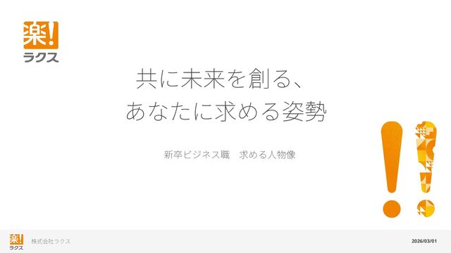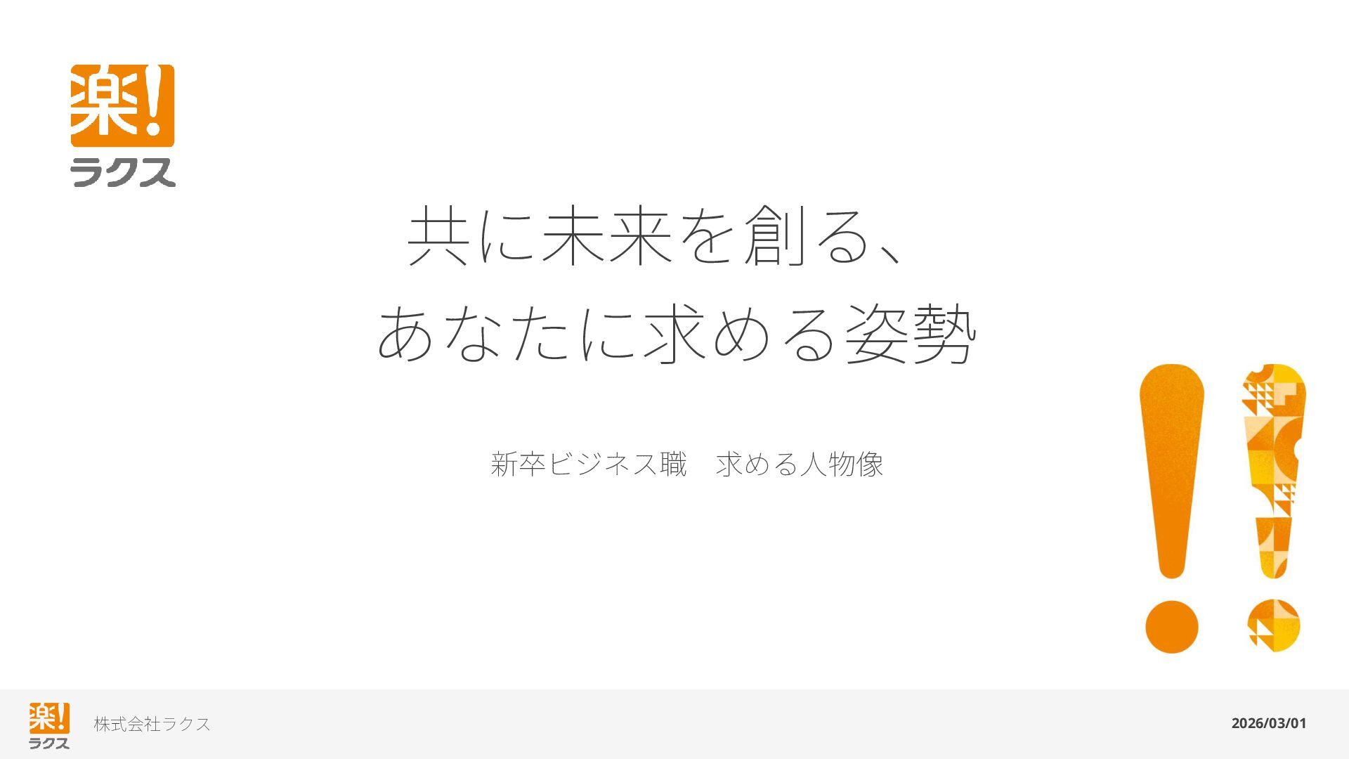 株式会社ラクス 共に未来を創る、 あなたに求める姿勢 新卒ビジネス職 求める人物像 2026/03/01