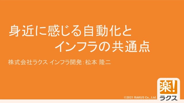 #RAKUSMeetup ©2021 RAKUS Co., Ltd. 身近に感じる自動化と インフラの共通点 株式会社ラクス インフラ開発:松本 隆二