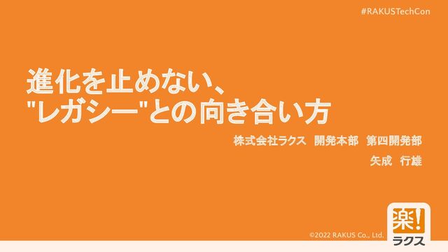 #RAKUSTechCon ©2022 RAKUS Co., Ltd. それは"レガシー"なのか? ❏ 扱っているサービスが「歴史ある」サービスなだけ ❏ わたしたちは変化、進化を続けていく