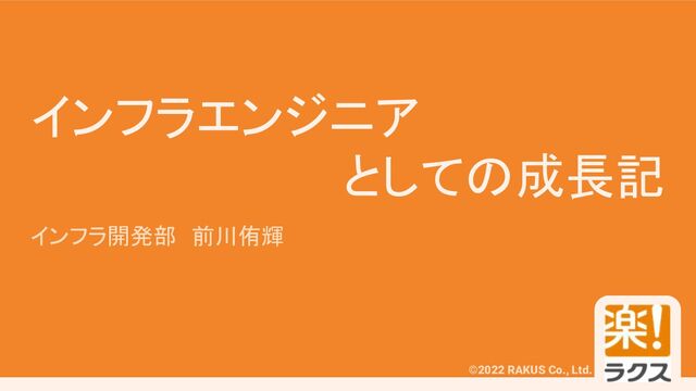 #RAKUSMeetup ©2022 RAKUS Co., Ltd. インフラエンジニア としての成長記 インフラ開発部 前川侑輝