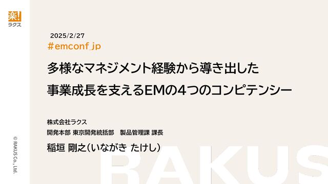◆発表タイトル 多様なマネジメント経験から導き出した、事業成長を支えるEMの4つのコンピテンシー