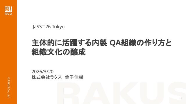 株式会社ラクス 第一開発統括部 QA課 金子 佳樹