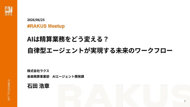 タイトル:AIは精算業務をどう変える?自律型エージェントが実現する未来のワークフロー 登壇:石田 浩章|AIエージェント開発課 課長