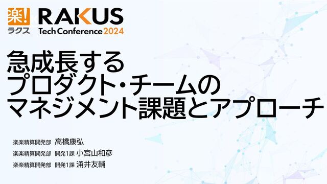 ◆登壇者 東京開発統括部 楽楽精算開発部 部長 髙橋康弘 楽楽精算開発部 開発1課 課長 小宮山和彦 楽楽精算開発部 開発1課 涌井友輔