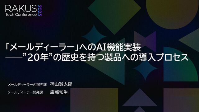 ◆登壇者 メールディーラーAI開発課 神山賢太郎 メールディーラー開発課 廣部知生