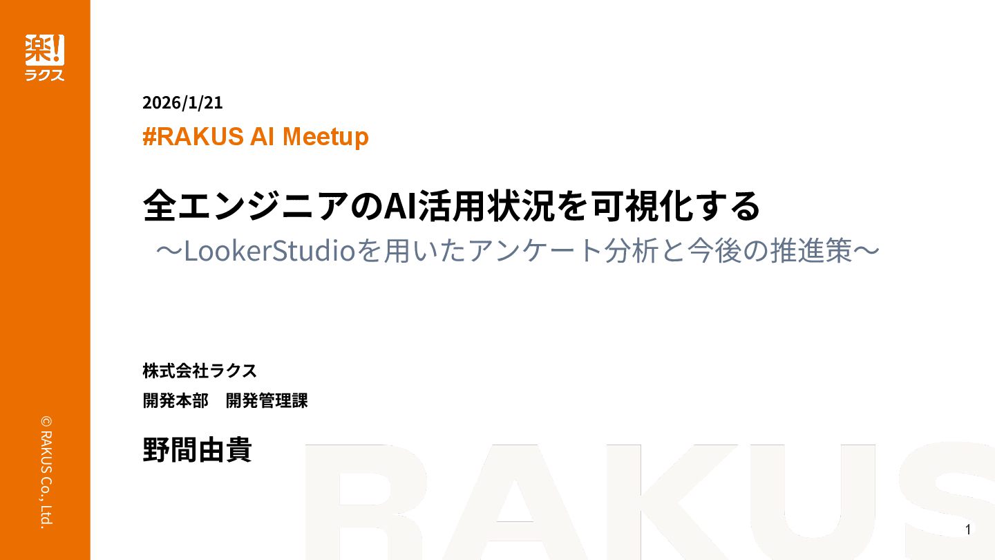 ◆発表タイトル 全エンジニアのAI活用状況を可視化する~Lookerを用いたアンケート分析と今後の推進策~