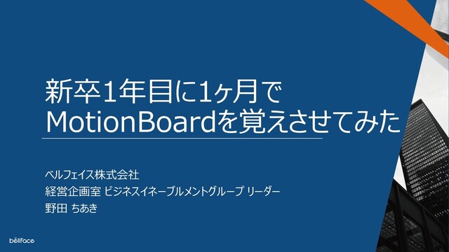 新卒1年⽬に1ヶ⽉で MotionBoardを覚えさせてみた ベルフェイス株式会社 経営企画室 ビジネスイネーブルメントグループ リーダー 野⽥ ちあき