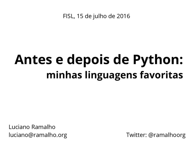 altamente consistente • Incrível oferta de bibliotecas robustas para todo tipo de aplicação – exceto mobile :-( • Suporte a abstrações úteis – funções e classes de 1a classe, closures, namespaces, geradores, comprensões, decoradores, sobrecarga de operadores, descritores de atributos...