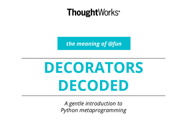 the contract of the decorated function: – Accept same number/kinds of args – Return result of compatible type • The replacement function should preserve metadata from the decorated function – Important for debugging and other metaprogramming purposes