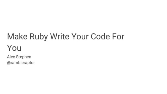 Code generators are shrouded in mystery and can sound unapproachable, but they aren’t! I’ll show you how code generation is no different than web development and why Ruby has all of the tools to build one quickly. You’ll leave this talk knowing where you could apply code generation in your own code base and how to get started!