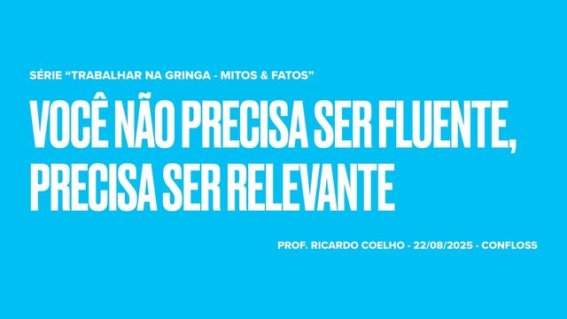 A palestra “Você Não Precisa Ser Fluente. Precisa Ser Relevante” parte da desconstrução do mito de que a fluência perfeita em inglês é o fator determinante para acessar oportunidades globais. A busca por esse objetivo paralisa muitos profissionais, criando uma barreira psicológica que adia indefinidamente o início de sua trajetória internacional. A régua de fluência é subjetiva, até mesmo nativos cometem erros, e a obsessão pelo idioma muitas vezes retarda a ação em vez de impulsioná-la.