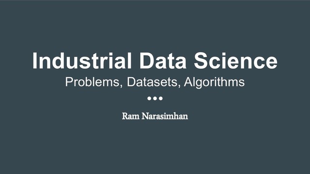 We look at the problems and solutions techniques that make up the Industrial Data Science landscape, for the entire Asset lifecycle. From its design (birth), building, operating, monitoring, maintaining and eventual decommissioning.