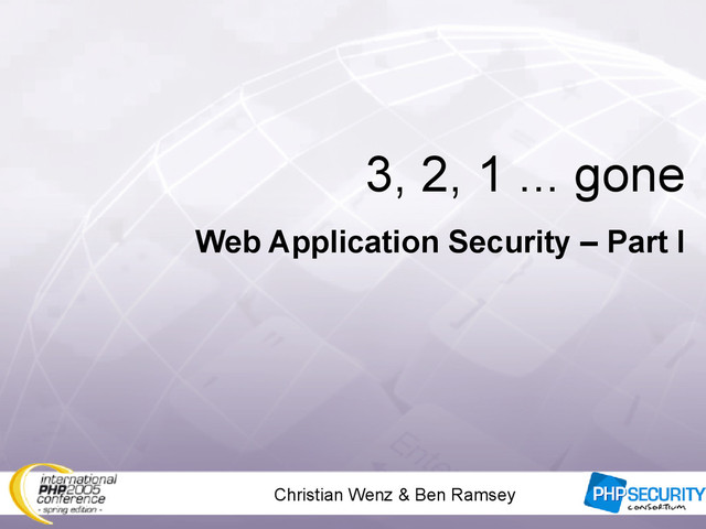 No week passes without a new security vulnerability. However, more often it is not a browser, server, or OS that is affected, but a web site. Most often, the same mistakes are made, paired with lazy programmers. This talk seeks to change this and covers securing a PHP-enabled website.