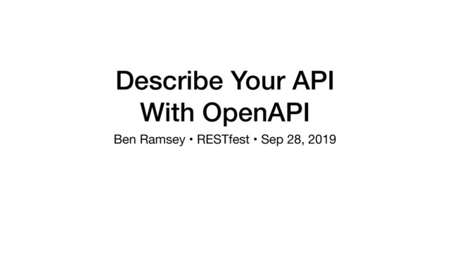 Describe Your API With OpenAPI (RESTFest 2019)