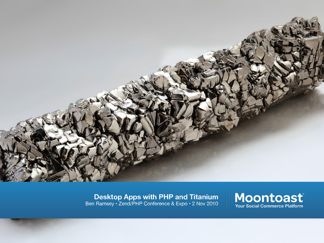 Appcelerator Titanium is an open source platform for developing native desktop and mobile applications using the web technologies you're familiar with. Web developers can use their skills to develop for both the Web and desktop/mobile apps. Ben Ramsey will demonstrate a simple application in Titanium Desktop, showing examples using JavaScript and PHP to power dynamic desktop applications.