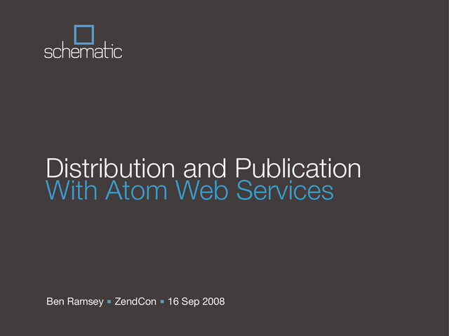 Ben Ramsey will introduce the Atom Syndication Format and Atom Publishing Protocol, explaining in depth how these can form the foundation of any web service for publication and distribution of data in any environment, from the enterprise right down to the small business level. Ramsey will also discuss RESTful design principles as they relate to the Atom Publishing Protocol.