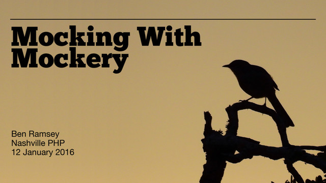 Mockery is a mock object framework that may be used with any unit testing framework. It is a flexible and human-readable domain specific language (DSL) for mocking objects in unit tests. With it, we can create some pretty powerful tests and even test legacy code containing hard dependencies. In this talk, I’ll show how to get started with Mockery. I’ll start with some basic mocking techniques and then move on to cover more advanced topics, including static methods, partial mocks, final classes, and hard dependencies.