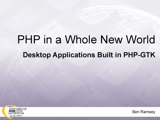 For several years, PHP has dominated on the Web, becoming the leading Web scripting language. However, PHP is not only for Web use; it is a general-purpose language that can be used to create desktop applications using GTK extensions. This talk examines some of the more popular applications created using PHP-GTK, as well as providing resources for more information on creating PHP-GTK applications.