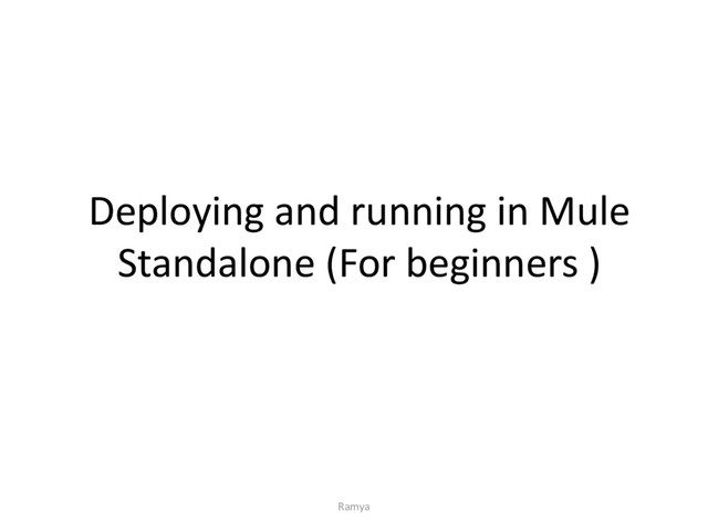 studio. This application we will be deploying and running in our Mule Standalone Server You can see a very simple flow which will send a message payload in our browser Ramya