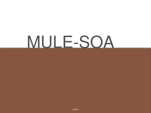 Mule … ▪ Instead we did a qualitative and quantitative comparison of major open source ESB products using different criteria: ▪ Primary: professional maintenance, commercial support with SLAs, licensing, performance, operations by IT department possible ▪ Secondary: documentation, code quality, activity and size of community, Spring support, sync and async communication, supported standards, app server integration, development tools ▪ Mule quickly emerged as the favored ESB product, followed by Fuse ESB and WSO2 ▪ Static analysis of the Mule sources (Sonar, Structure101) showed acceptable quality ▪ Modularization and project structure looks well- thought-out and enables light-weight deployment ▪ Good code quality, in spite of found violations and partially low documentation ▪ T est coverage is reasonably high to ensure correct function in case of changes How and why we selected Mule Based on the proposed architecture scenarios we could identifythe requirements on the ESB product RAMYA
