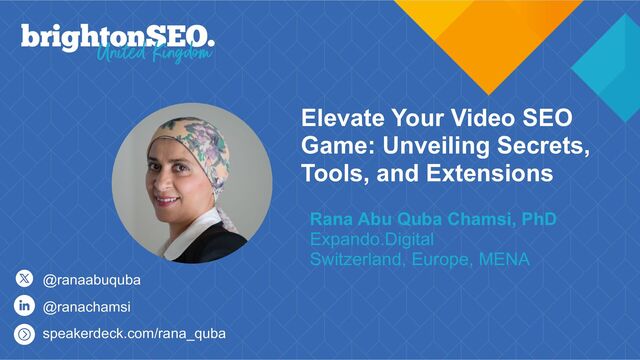 Rana BrightonSEO Octobre 2024: Elevate your Video SEO Game: Unveiling Secrets, Tools and Extensions