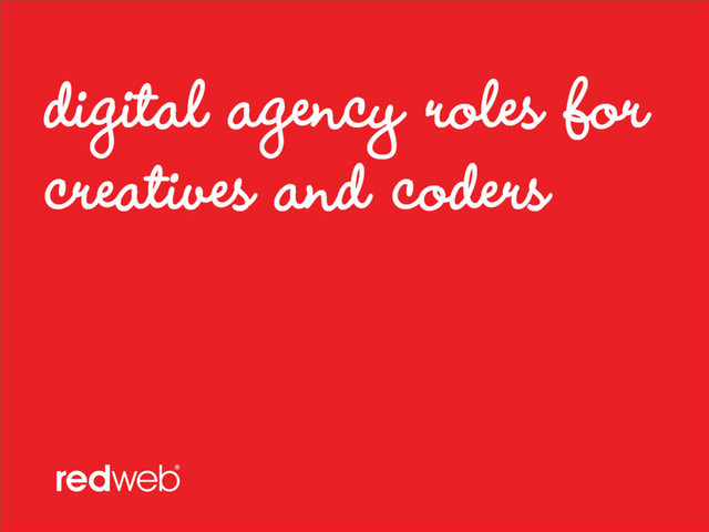 A talk that gives guys & girls starting out in the industry a flavour of the diversity of directions their careers in digital could take. Plus an insight into how creatives are involved in winning pitches and delivering projects.