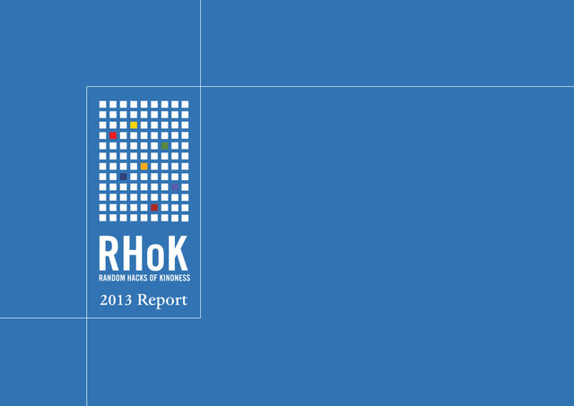 KINDNESS RHoK is a rapidly growing global community initiative involving over 6,000 innovators in more than 35 countries who make the world a better place by developing practical, open source technology solutions to some of the most complex challenges facing humanity. RHoK is a mass collaboration—a movement that intelligently engages masses of people in collective action toward specific outcomes. Gathering people from diverse backgrounds and organizations, RHoK leverages their creative potential for software-based solutions the world urgently needs. RHoK is backed by Google, Microsoft, Yahoo!, HP, NASA and The World Bank as its Core Partners and DiUS as a Regional Partner for Australia, as well as a host of over 225 local partners around the world from the corporate, government, civil society and academic sectors. The year-round operations of RHoK are managed by mass- collaboration specialists, SecondMuse. Random Hacks of Kindness represents a novel approach to identifying and solving challenges for social impact. This process begins with defining local and global problems, prototyping solutions at internationally coordinated hackathons, and supporting the development and deployment of high- potential projects. Through RHoK, local experts, NGOs and community members identify problems which are then refined and curated by subject matter experts with field knowledge working in collaboration with technologists. Twice yearly, RHoK facilitates global hackathon events as a way to kickstart the projects that can be rapidly prototyped during a weekend, and then developed by the community throughout the year. The cost of prototyping solutions in a hackathon format is very low, yet the value of the resulting projects, partnerships and knowledge is significant—particularly for social impact organizations that struggle to achieve their goals with limited resources and technical support. RHoK projects tackle problems in a range of subject areas from international development to civic activism. Promising prototypes built at the hackathons are further developed through a process of incubation and implementation at the local level. RHoK is unique in its international reach, efficient use of resources and wide-range of subject matter areas covered with solutions that create a sustainable and measurable impact. The collaborative structure of RHoK also enables rapid response to new challenges that arise in this young and quickly evolving space. RHoK continually strives to measure its programmatic value, even through rapid growth and expansion. The technology solutions themselves, and their resulting impact, as well as the value of the thousands of professional hours donated, are only a part of RHoK’s value. Equally compelling, though perhaps more elusive, are the benefits that result from the building of a global community of individual and organizational actors collaborating for the betterment of the world. RHoK has become a platform for bringing people together to realize a purpose--from partnerships built among companies who are otherwise competitors, to collaborations undertaken between the non-profit and technology sectors. Through that platform RHoK has seen international collaboration and knowledge sharing take place, new models of peer-to-peer skills building and experiential learning, leadership capacities developed, jobs created, public data utilized for public good, and increased awareness among technical professionals of the broad array of human development challenges that their specialized skills can impact. RHoK is nothing less than an opportunity for motivated individuals to collaborate on expanding their own capacity to have an impact on the world, and in doing so to engage with people from the grassroots on up to the highest levels of governments, corporations, and other institutions. This report details the methodology, goals and impact that have made RHoK successful, and replicable in any community - including yours.
