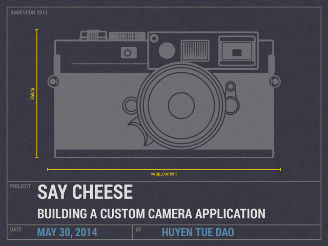 CONTACT HUYEN TUE DAO THINGS TO CHECK OUT Standford Digital Image Processing Class http://www.stanford.edu/class/ee368/Android/index.html ! Android Design in Action https://www.youtube.com/watch?v=OLSa7fErTAM