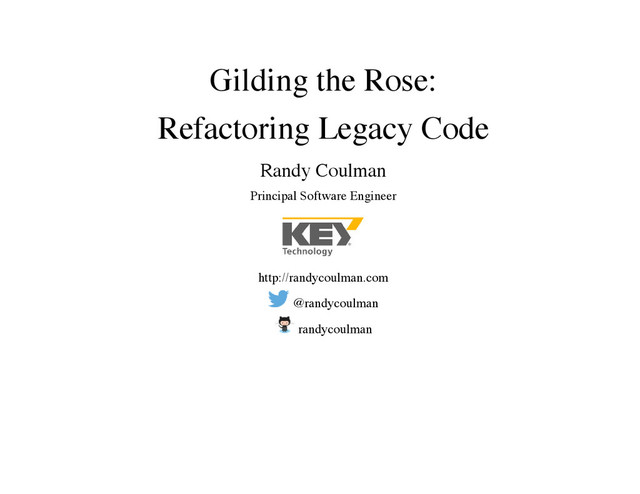 In this presentation, I use the Gilded Rose kata to demonstrate techniques for safely working with a legacy codebase and using pure baby-step refactorings to improve the design.