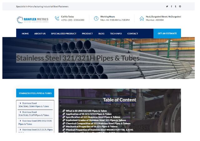 Grade 321 is a brilliant option when using in high temperature environments of up to 900 degree celcius. Stainless steel 321/321H mostly used in manufacturing heat exchangers, pressure vessels, pharmaceuticals and chemical processing equipments. Stainless steel 321 pipes refer to as UNS S32100 and SS 321H pipes is refered to as UNS S32109 and both are available in both seamless and welded form in various sizes. Stainless Steel 321/321H seamless & welded pipes and tubes can be offered in random lengths, varied types and various forms.