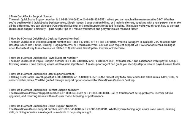 QuickBooks Desktop 1-888-340-0682 or 1-888-340-0682 is a popular accounting software solution developed by Intuit, designed to help 1-888-340- 0682 or 1-888-340-0682 businesses. 1-888-340-0682 or 1-888-340-0682 It is widely used by businesses of various sizes, especially large organizations that require 1-888-340-0682 or 📞 +1-888-339-8581 robust accounting and financial management capabilities. However, even with its user-friendly interface and powerful features, 1-888-340-0682 or 1-888-340- 0682 QuickBooks Payroll users may occasionally encounter issues or need assistance. In such cases, they can rely on the dedicated QuickBooks Payroll support number: 1-888-340-0682 or 1-888-340-0682 to get professional help and resolve any technical or functional issues